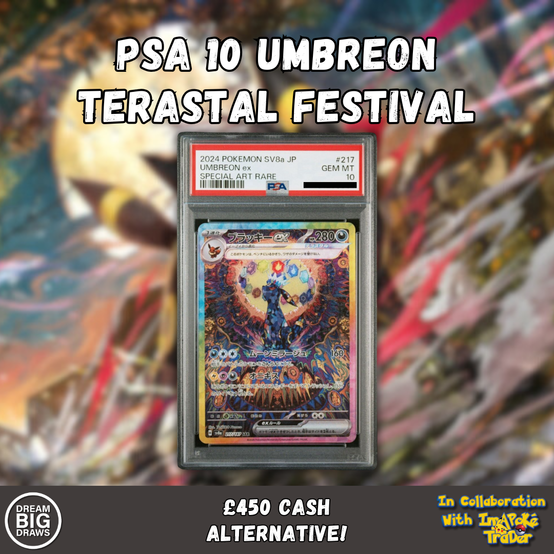 Introducing our latest PSA 10 Pokémon competition! We’re giving you the opportunity to win an UMBREON from Terastal Festival in an PERFECT PSA 10 Condition for just 5p!