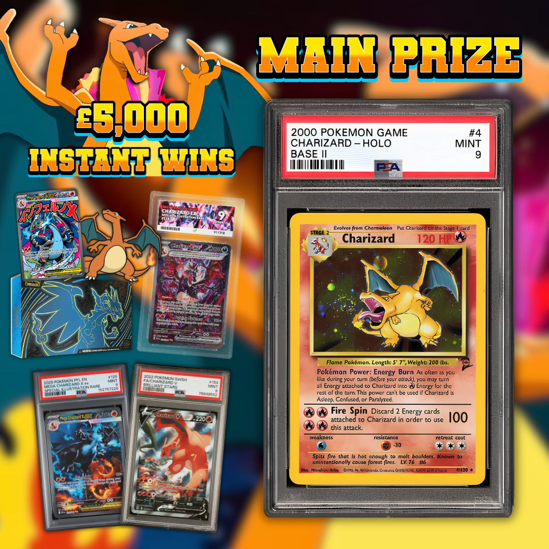 PSA 9 Base Set 2 Charizard Holo + £5K Charizard Instant Wins! – AUTO DRAW